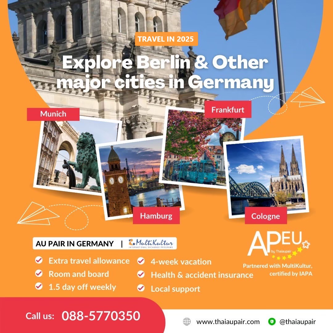 ติดต่อเพื่อเช็คคุณสมบัติ ขั้นตอนการเตรียมตัว และ slide ข้อมูลค่าใช้จ่ายโครงการ Au Pair in Germany ได้ ที่นี่