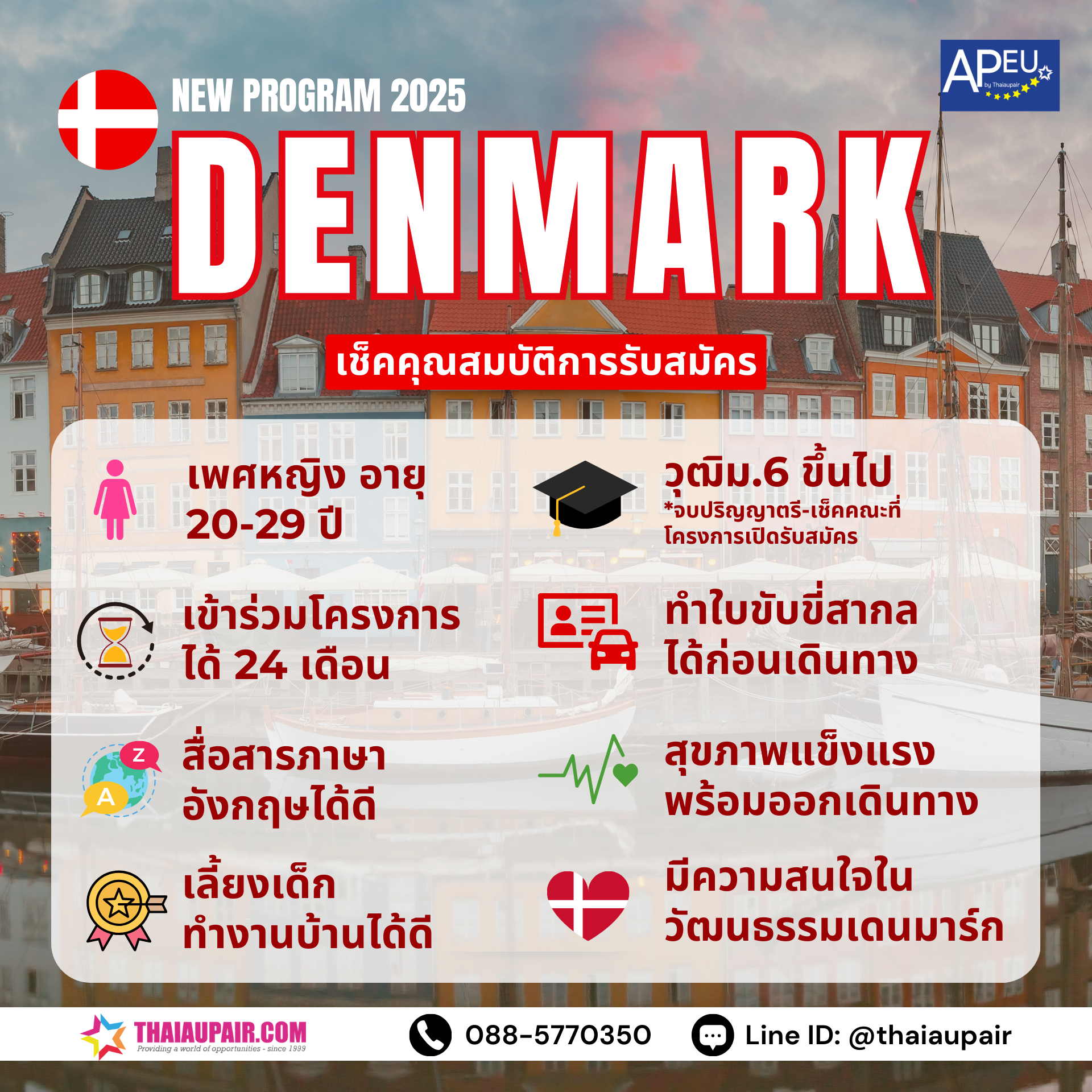 ติดต่อเพื่อเช็คคุณสมบัติ ขั้นตอนการเตรียมตัว และ slide ข้อมูลค่าใช้จ่ายโครงการ Au Pair in Denmark ได้ที่นี่